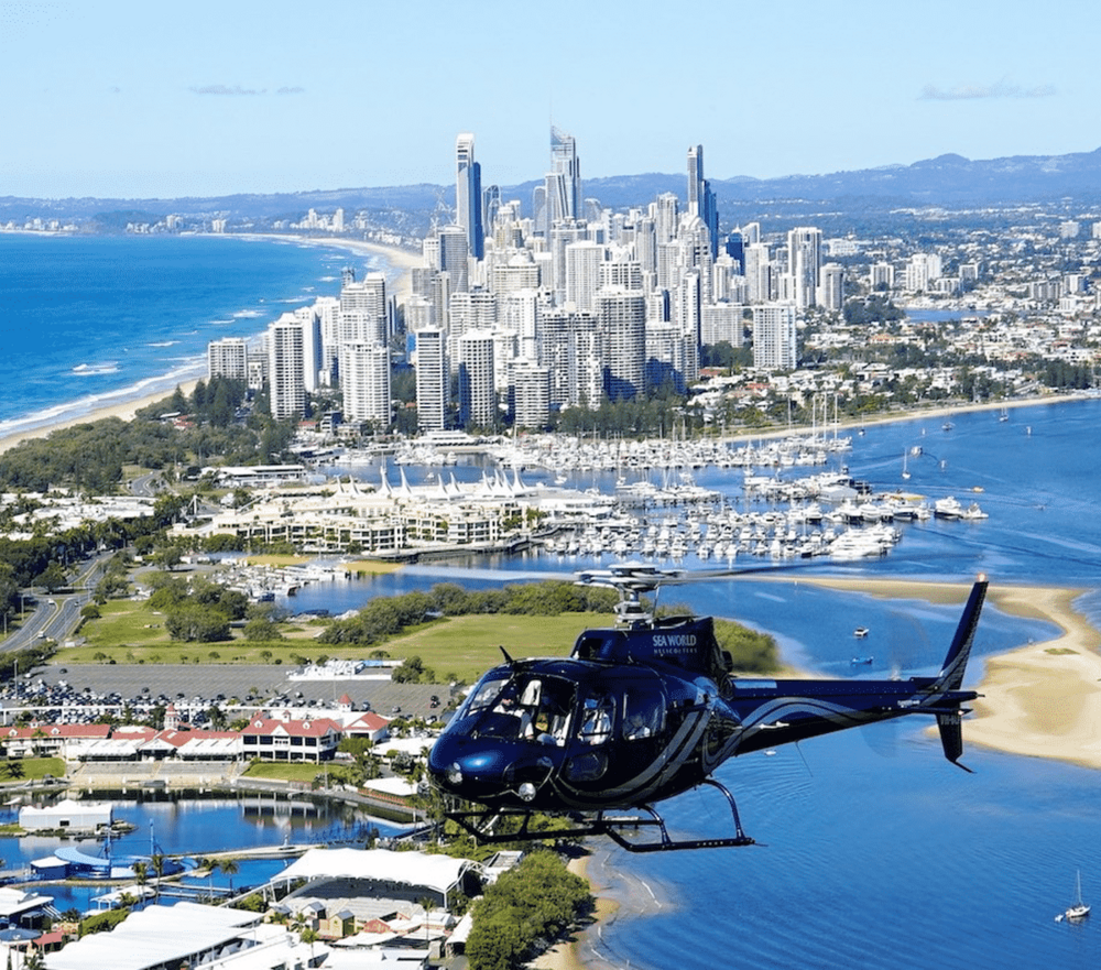 See the spectacular Gold Coast in style with one of our Helicopter Tours.This tour takes off from Sea World Helicopter’s terminal and climbs over the Broadwater.